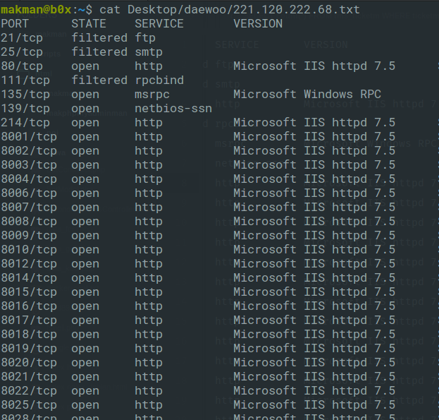 Let’s choose one of these IP addresses 221.120.222.68 and see if we can find more ports.