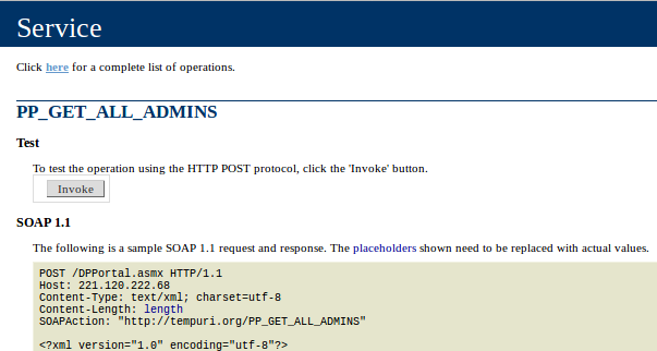 Why on earth would someone expose their WSDL page publicly with the complete list of API endpoints and operations. And not just that, but a complete user interface to invoke these web services and see the actual results. No authentication, no secret key, no token?