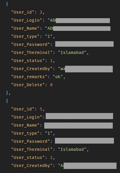Here’s another critical endpoint which shows plain text admin credentials. All I have to do is, click a button.